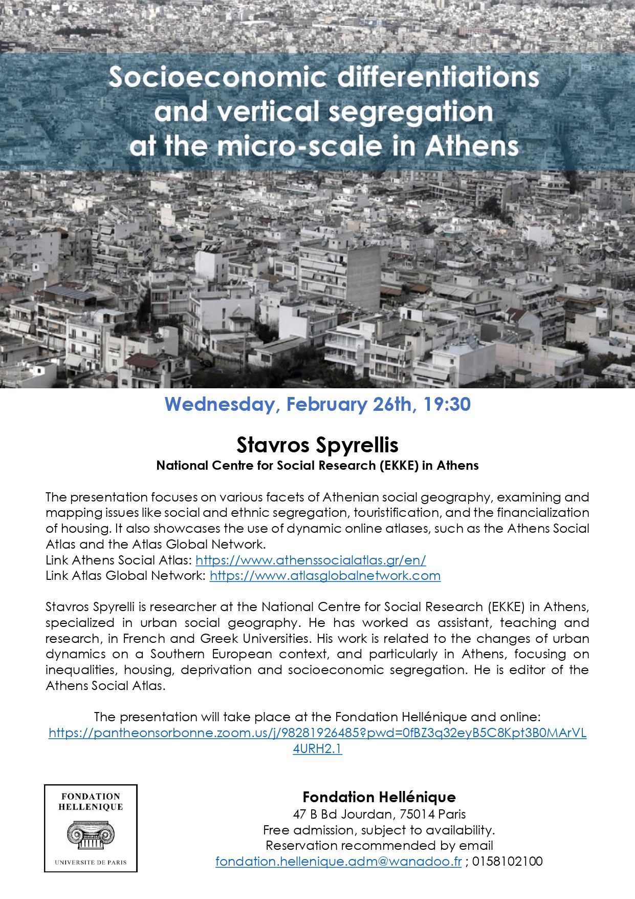 • Différenciations socio-économiques et ségrégation verticale à l’échelle micro à Athènes_CONFERENCE_26.02.2025